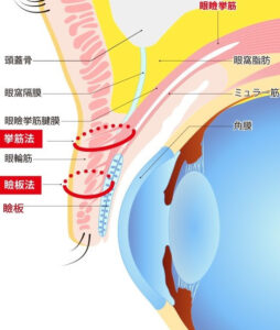 眼瞼挙筋腱膜がまぶたの皮膚まで繋がっていて、
