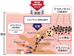 代表的な刺激要因は紫外線ですが、ほかにも摩擦などの外部刺激、