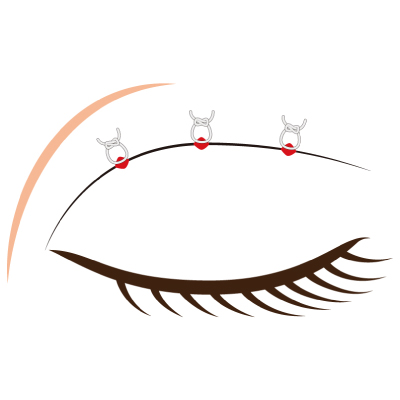 上まぶたのくぼみは、東洋人の目の老化の代表的な症状です。注入法より粒子が大きく吸収が少ないのが特徴です。